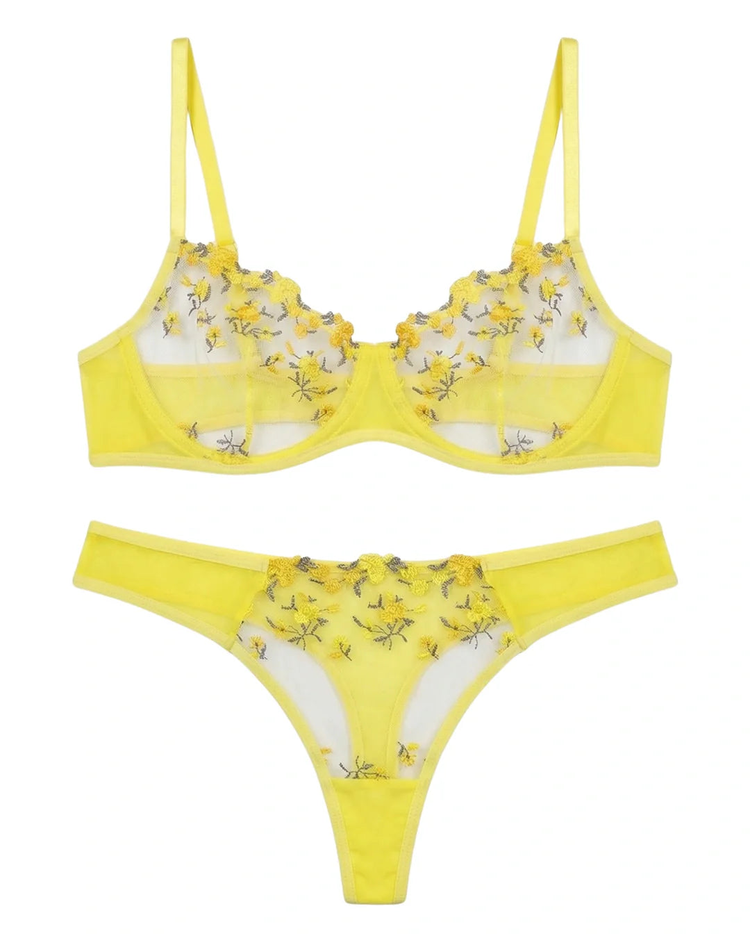 Noir Rose Set is a captivating blend of romance and bold elegance. Crafted on a sheer mesh base, this set features intricate rose embroidery with subtle accents that create depth and dimension. The structured underwire bra enhances natural curves with graceful lift, while the delicate embroidered detailing adds a refined, feminine touch. Designed for those who love statement lingerie with timeless sophistication.