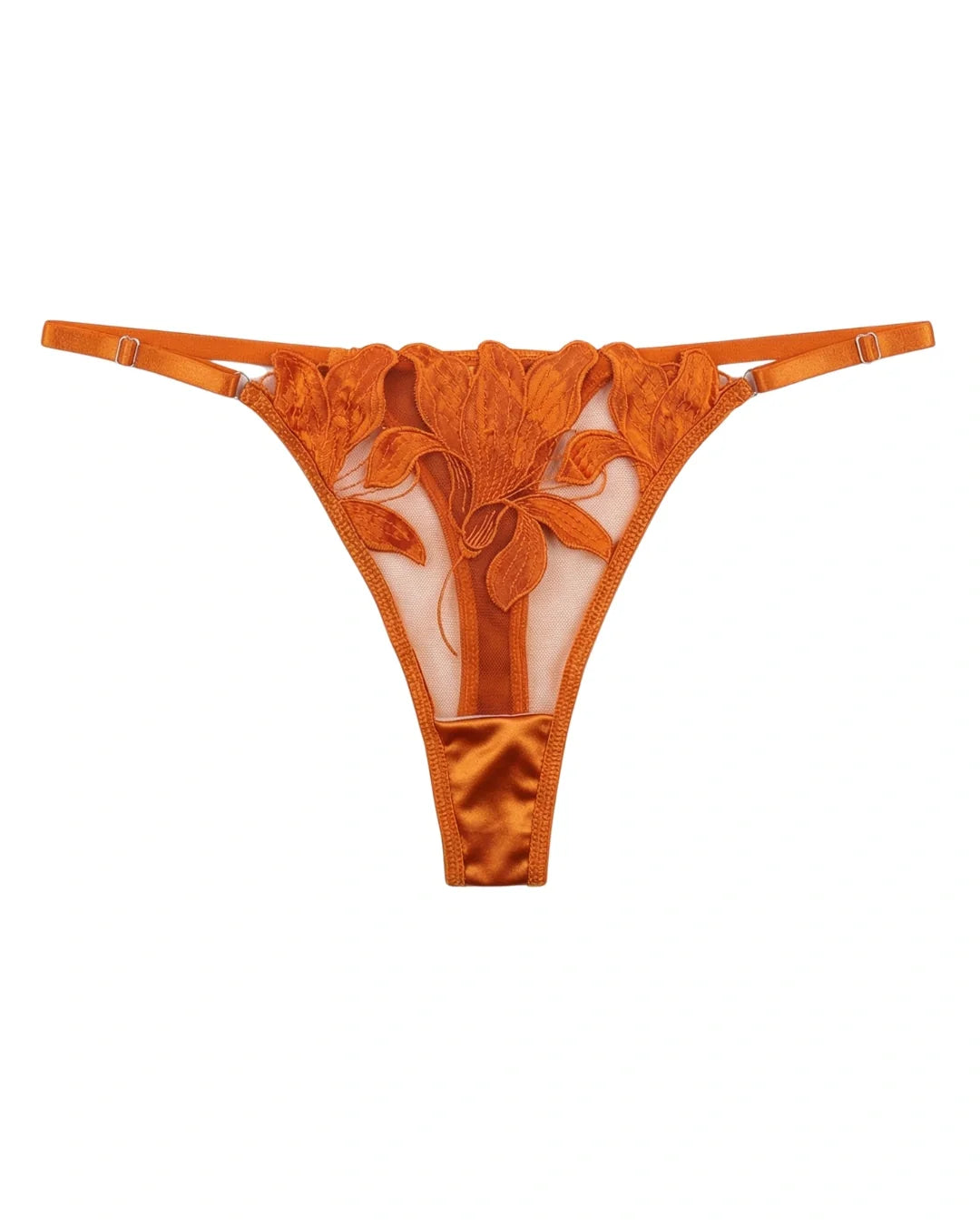 Roselle Bloom Set is a statement of soft luxury and feminine allure. Crafted in a delicate tone, this set features intricate floral embroidery over sheer mesh, paired with smooth satin panels for a perfect balance of elegance and bold styling. The sculpted design enhances natural curves while offering a lightweight, breathable feel—ideal for confident, elevated wear.