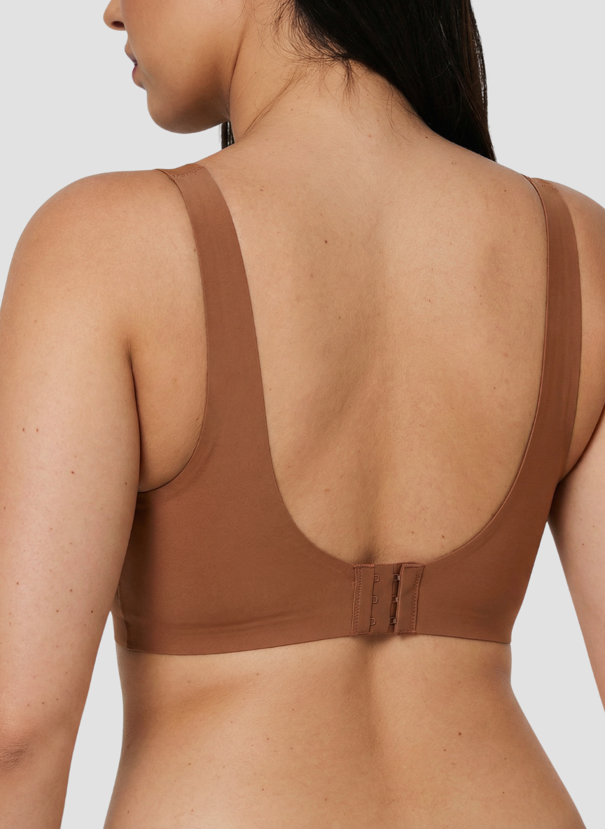 The deep V neckline creates a flattering, feminine silhouette — perfect for low-cut tops and dresses — while the seamless design stays invisible under any outfit.